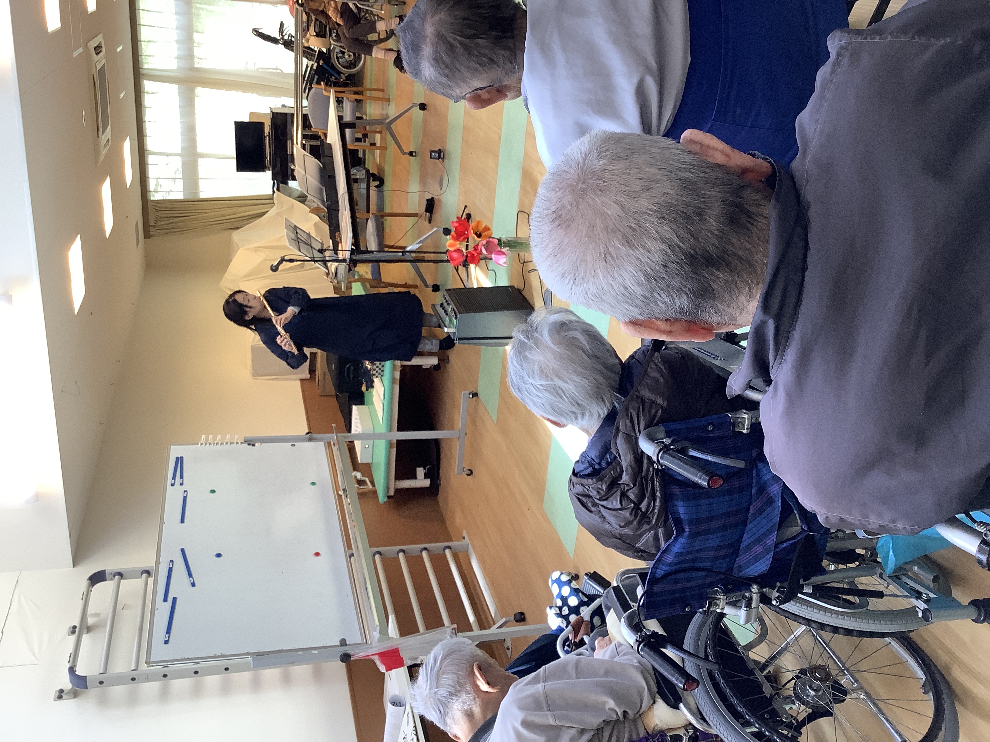 さらに先生によるフルート演奏も披露され、よくご存じの曲が流れると、会場からは「きれいな音やねえ」と感嘆の声が上がり、演奏が終わるたびに大きな拍手が送られました。